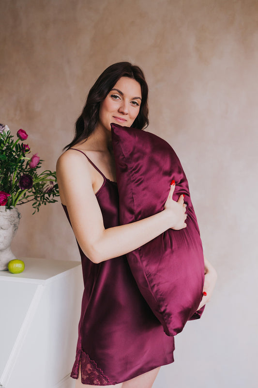 100% silk nightwear provides a gentle and smooth feeling against the skin, promoting relaxation and aiding in a restful night's sleep.