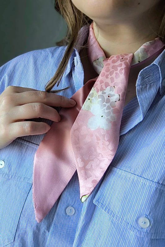 Silk Ribbon/ Neck and Hair Scarf, Short Pink Floral