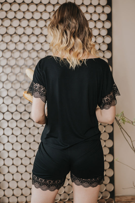 Pidžama Bohdana ar mežģīnēm, melnā krāsā