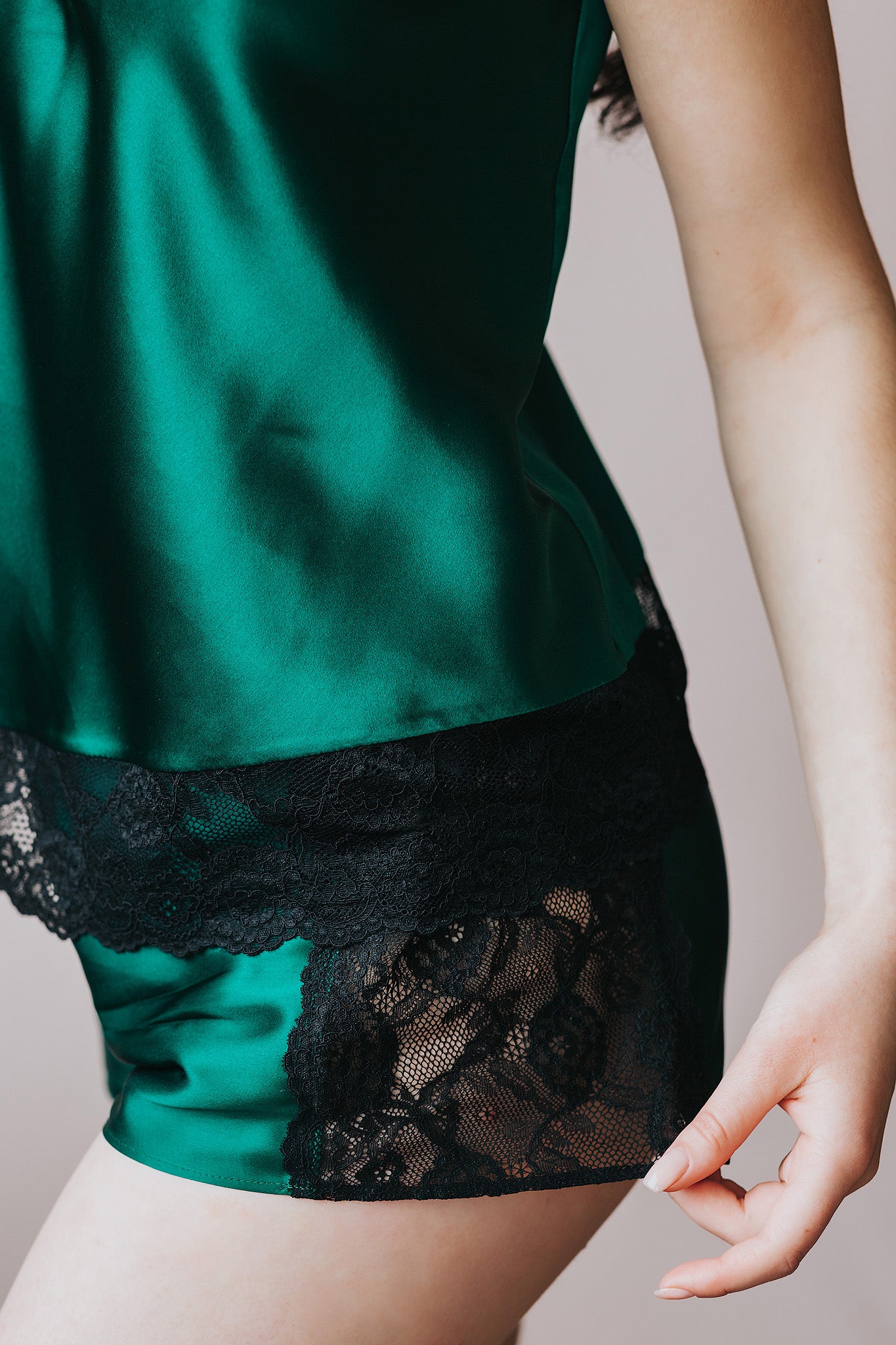 Jūties eleganti un izsmalcināti smalkā un ērtā zīda naktsveļā. Glaimojošs piegriezums un elegantās mežģīņu detaļas ļauj justies ēri, pārliecināti un sievišķīgi. Zīda komplekts ir lieliska izvēle gan īpašiem, gan ikdienas mirkļiem.