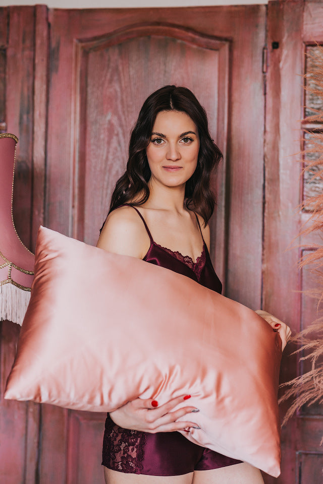 Rožu rozā krāsas zīda spilvendrāna kvalitatīvam un maigam naktsmieram no maiga un mīksta dabīgā zīda auduma sniedz komfortu visas nakts garumā.