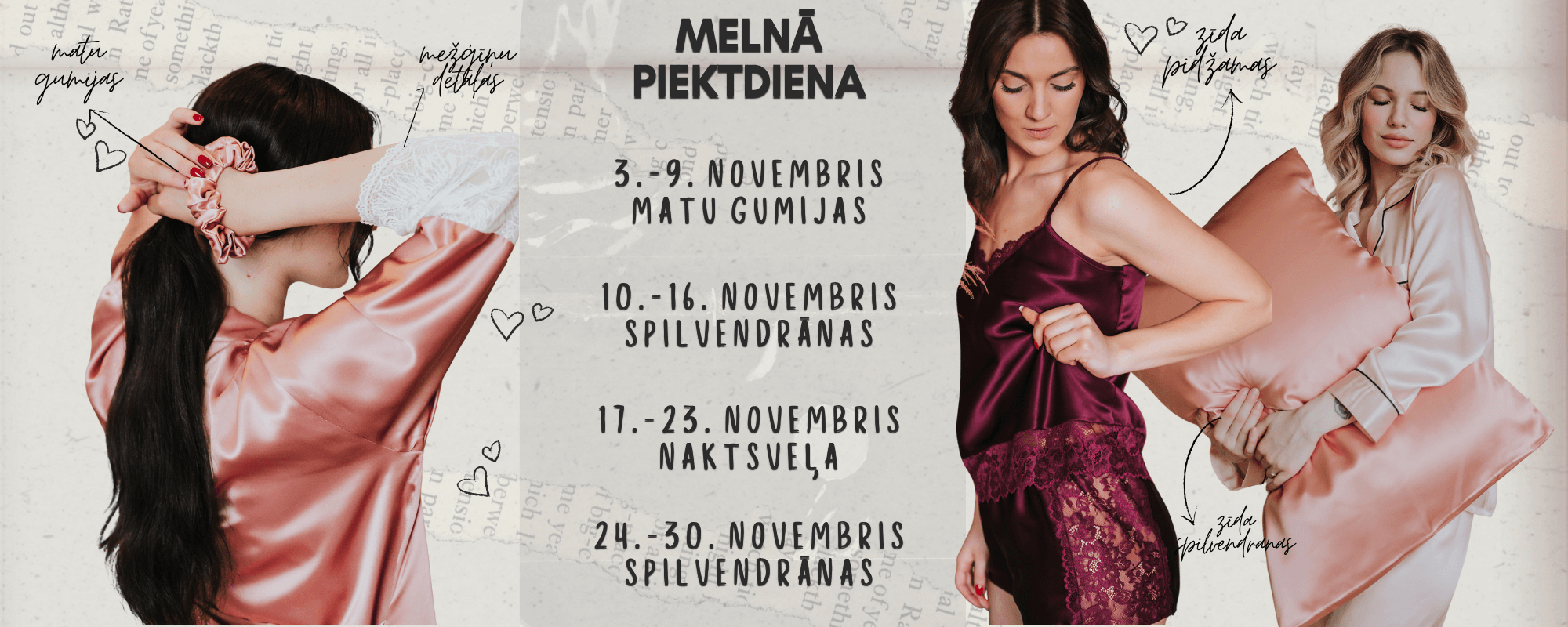 This week 1 discount code is automatically activated. Choose silk nightwear and add 2 hair ties to your cart and receive scrunchies as a gift.