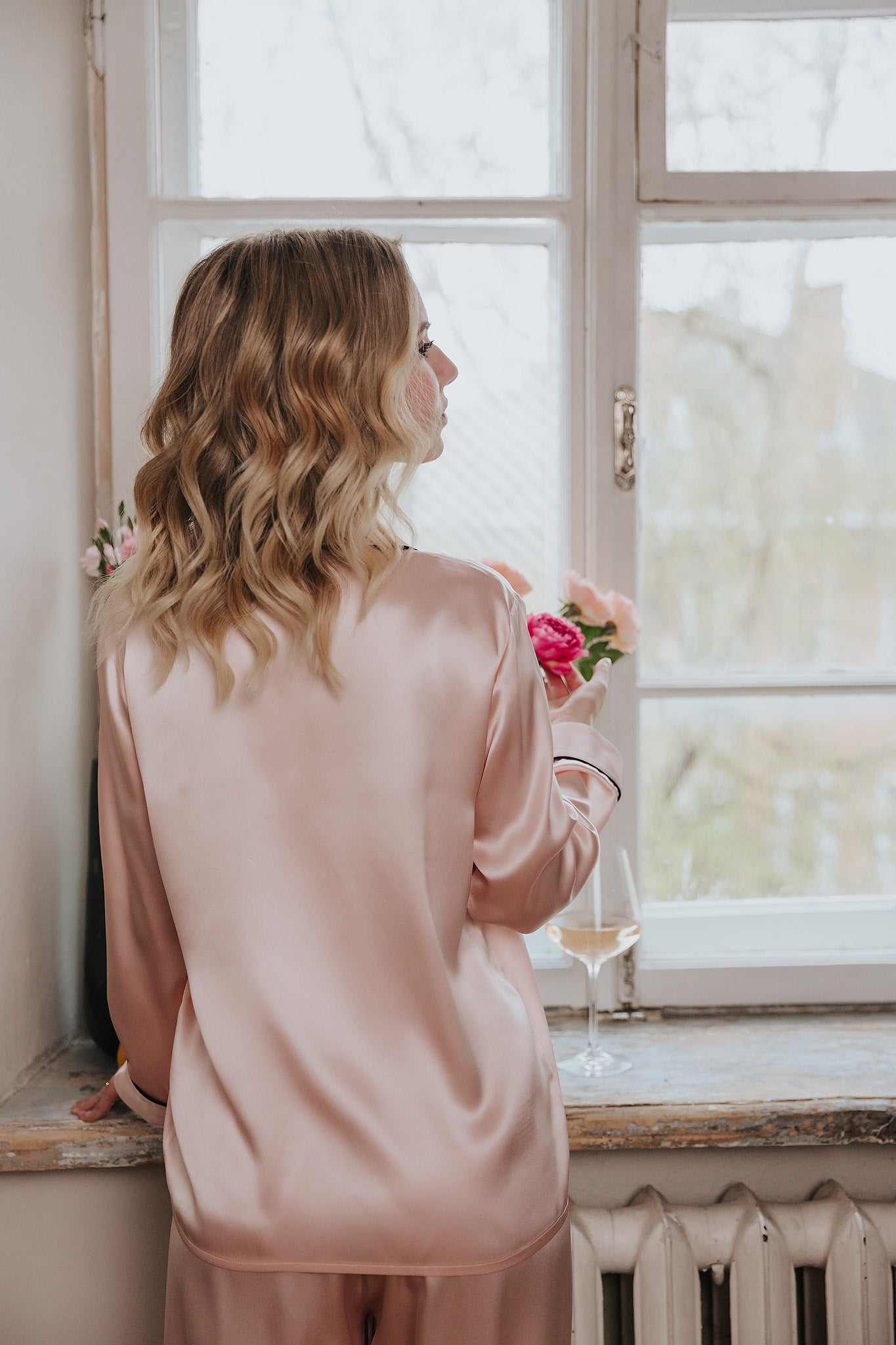 Charming, loose-fitting, classic-style pajama so that you can sleep comfortably at night and enjoy your morning coffee elegantly in the morning.