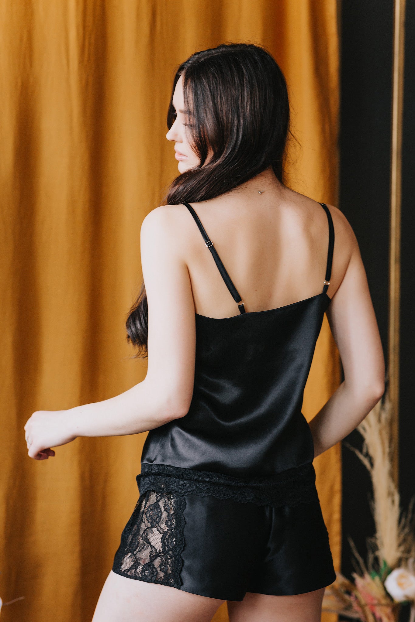 Silk pajama with lace, Black